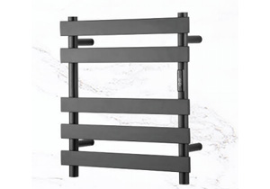 6桿時(shí)控開(kāi)關(guān)電熱毛巾架 6 bar time switch heated towel rail 材質(zhì)Material:SS201/SS304 功率Power:220V/160W 表面Surface:Black Painted 黑色噴塑 尺寸Size:550*120*540mm 包裝Ctn size:570*60*570mm